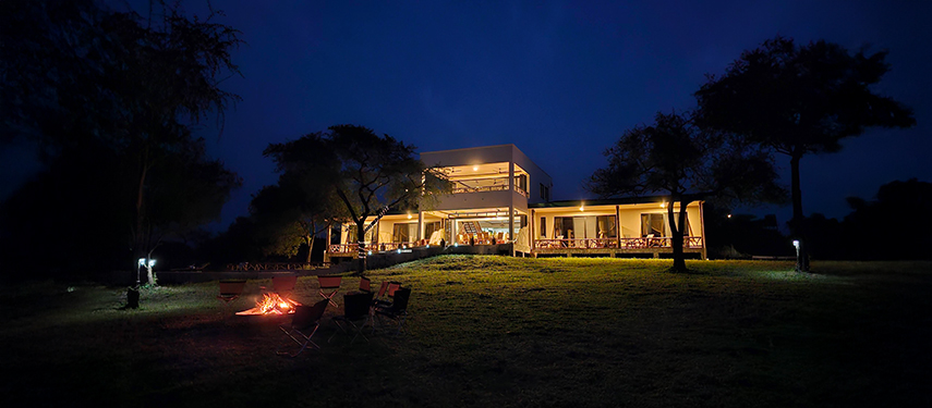 The house consists of four luxurious en-suite double or twin bedrooms with individual balconies and a spacious ground-floor lounge, indoor and outdoor dining, bar and upper-level lounge that opens onto a magnificent vista. The Villa can be booked for exclusive use, or the two rooms in each ‘wing’ of the Villa can be booked separately, with the central area of the Villa being a shared space (much as you would share the lounge and dining area in a larger lodge). Whilst the Villa is fully staffed and catering services are provided, there is a kitchen where you can create your own culinary dishes, midnight snacks or personalised cocktails, if you wish. Direct river access via its private jetty completes the exclusiveness of this unique and stylish villa.