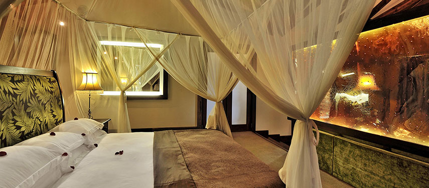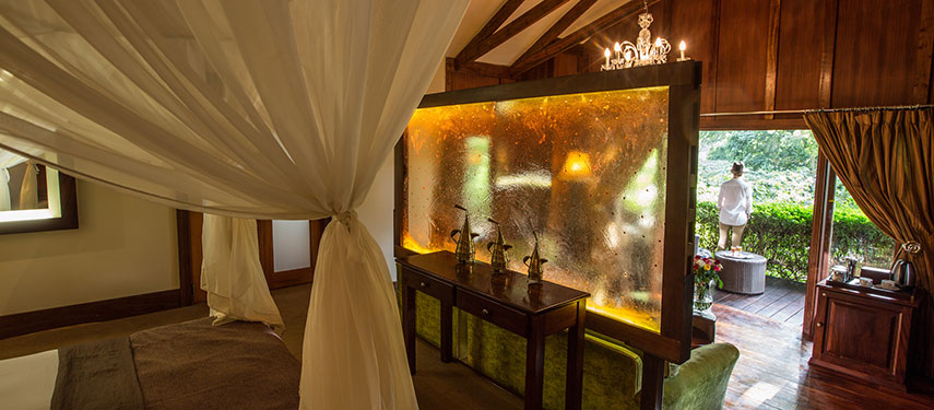 The lodge offers 28 private chalets and suites, all built on raised wooden platforms with multi-level bedrooms, private lounges and balconies overlooking the Mt Meru or the plantation.