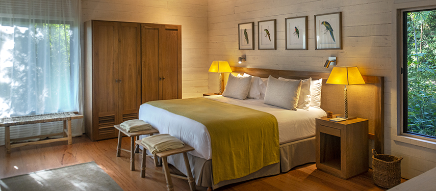 All 14 luxury villas have been cleverly positioned within walking distance to the main lodge but far enough away from each other that your stay can make you feel truly alone and at one with the natural beauty of the surrounding jungle. You can expect to find bucket-like armchairs, vast double beds, indoor and outdoor showers, and a large private deck with a plunge pool. The main lodge and all 14 villas have been tastefully designed and inspired by local Guarani crafts and in the kitchen, colourful and well-designed dishes are sure to impress.