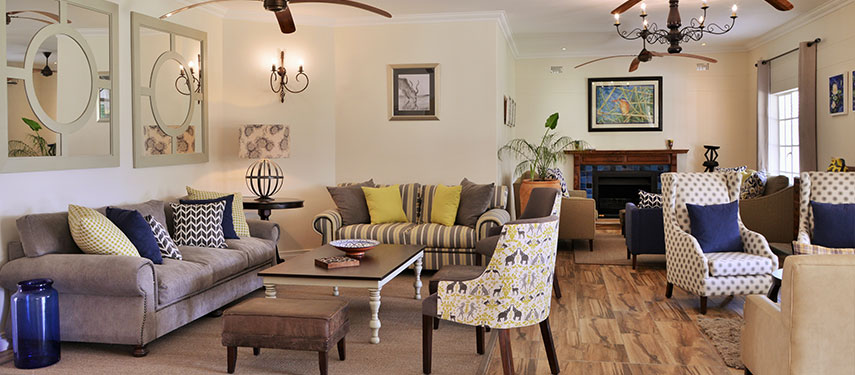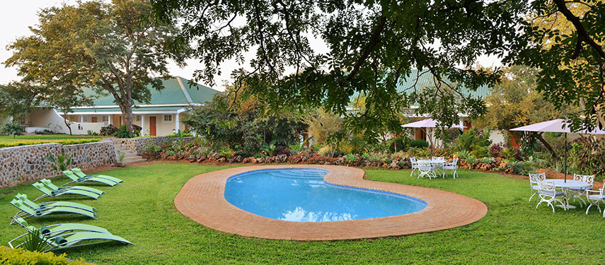 The lodge resides in manicured gardens with a welcoming communal area that encompasses the reception, a small but impressive curio shop, a tastefully decorated lounge, an airy indoor dining area and expansive terrace. With a coffee hub overlooking the gardens and swimming pool the terrace is the place to relax or engage in conversation with fellow travellers.