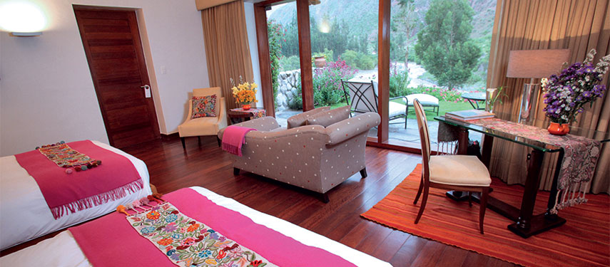 Harmonizing with the rural surroundings, its suites and villas are decorated in local Peruvian style with contemporary flair. While modern and manufactured touches are kept subtle and discreet, features such as the lush flower gardens and local textile decorations keep the hotel firmly grounded in the Urubamba Valley.