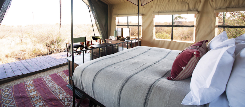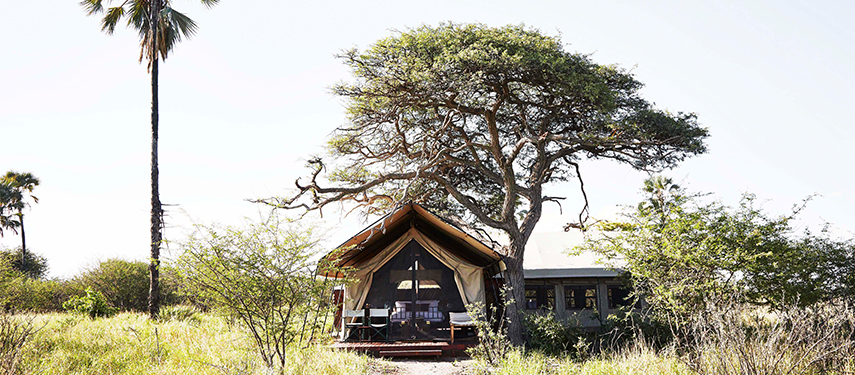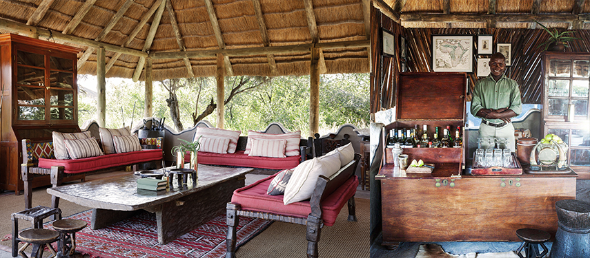 The 11 Meru-style canvas tents are fully furnished with four poster beds, dark wood furniture, Moroccan rugs and quirky textiles and the en suite bathrooms have open air showers, flush toilets and plenty of hot running water. A family tent with interconnecting rooms is available for small groups or those travelling with children. The common areas include a central library and a living and dining area, festooned with an eclectic mix of original African furniture and colonial antiques and a thatched swimming pool provides the perfect place for a refreshing dip on a hot afternoon. Meals are served family-style, at the long table and the food is of exceptional quality. The use of electricity is kept to a minimum and the whole twinkles in lantern light as dusk falls.