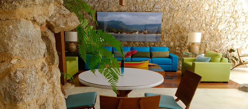 Casa Turequesa occupies a restored historic mansion with a faithfully recreated 18th century façade. With just nine spacious suites the property ensures an ambience of warmth and intimacy. Wide windows and sweeping balconies beautifully frame views of the inner courtyard, Paraty Bay, the tiled rooftops and mountains, or the dome of the Santa Rita Church. Warm colours and natural materials like wood and stone bring a sense of coziness to each of the guestrooms. The hotel’s common areas include a spacious living room, a boutique and a library, complete with fireplace to gather around on colder days. Just outside is the courtyard enclosed by a garden dotted with orchids and a small whirlpool to relax in and a charming gazebo which is perfect for enjoying a drink or getting a massage.