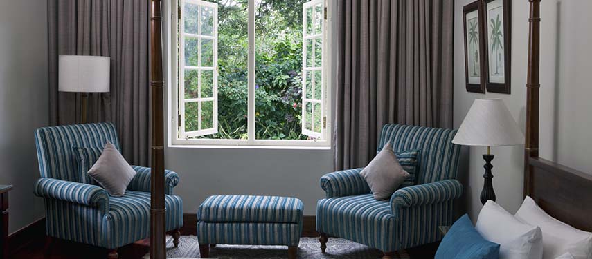 Castlereagh Bungalow lies nestled on the banks of Castlereagh Lake in a woody glade and is perhaps the most romantic of the four. It is also the most remote and is reached along a windy, sometimes bumpy road that passes through tea plantations where pickers are busy at work. It exudes elegance from its parquet floors, to its inviting drawing room with a log fire. The garden suites have sensational views over the glassy waters of the lake. The Bungalow comes with its own manager, chef, butler and house boys that help make the stay as memorable as possible. Enjoy reading by the pool, having high tea in the summerhouse or a gin and tonic on the terrace.
