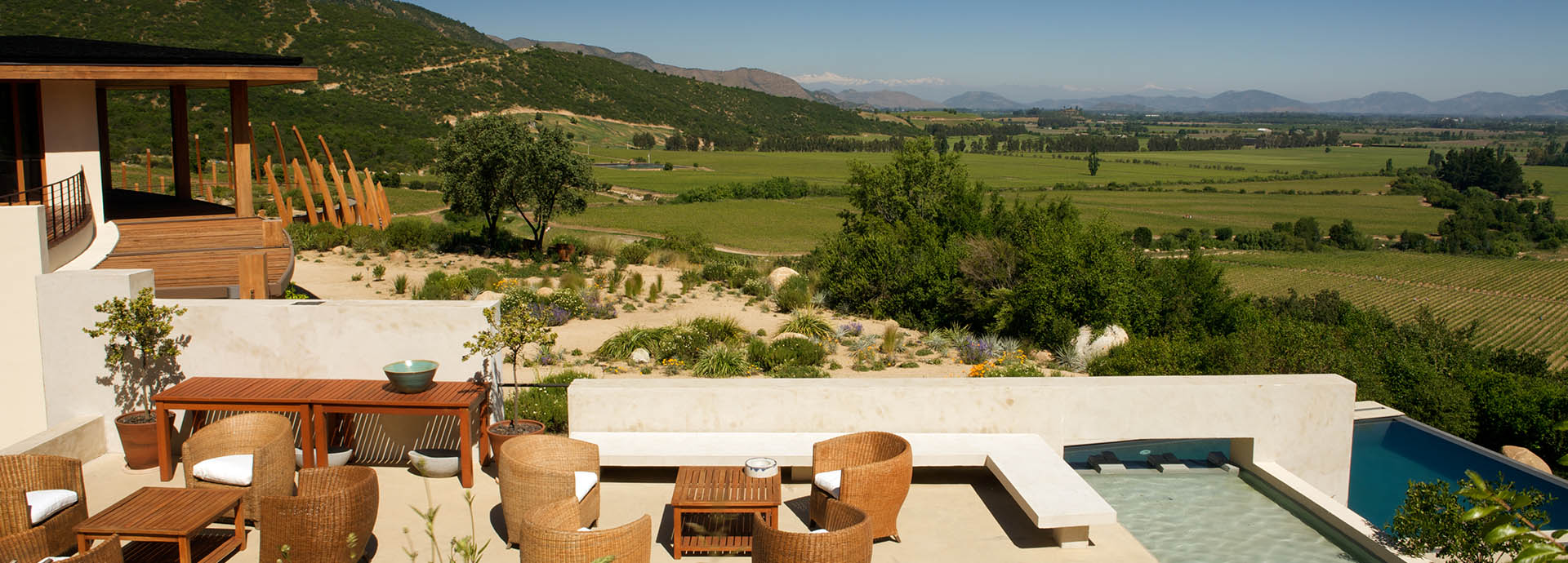 Your days here will be spent touring the local wineries, horse-back riding, hiking, or perhaps relaxing by the infinity pool after a massage. It is also, of course, a great place to learn about the wines of the region including world-renowned Clos Apalta.