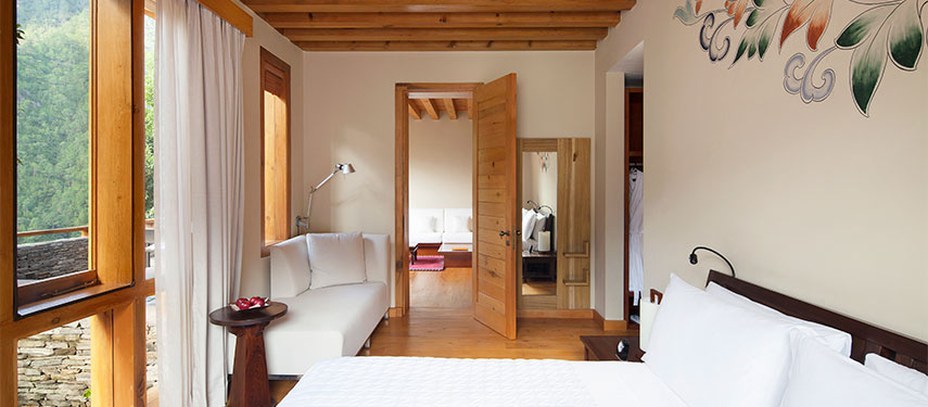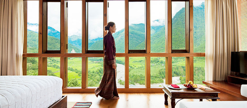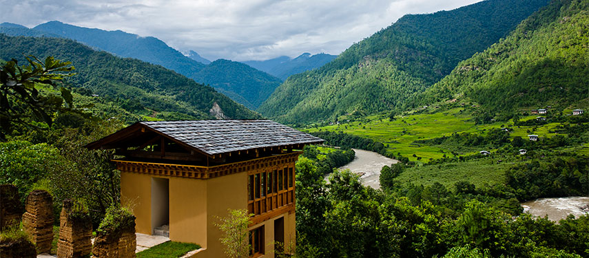 Located at the far western end of the beautiful Punakha Valley on a bend in the Mo Chu river, lies Uma by COMO, Punakha. Here you can find luxury accommodation where every room enjoys sweeping views across the Valley. Nine deluxe Valley View Rooms and two Villas, some with private terraces, share similar breathtaking views and come with king-size beds or twins and spacious bathrooms.