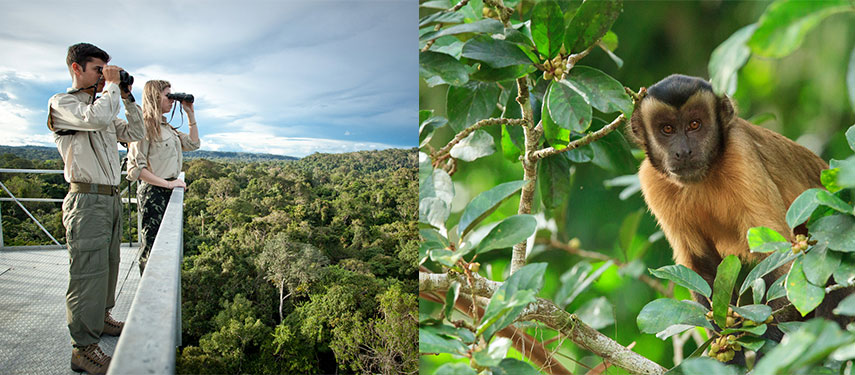 The observation towers at Cristalino are truly spectacular, towering above the forest’s 45m high canopy to allow you to catch a glimpse of the Amazon’s tanagers, chatterers, macaws, parrots, toucans and aracari. During your stay you may also wish to unwind on the 144m² deck, canoe on the tranquil waters of the River Cristalino, hike the 30km of nature trails within the reserve, take a boat trip and spot tapir, giant otter, white-whiskered spider monkey and collared peccary to name just a few.