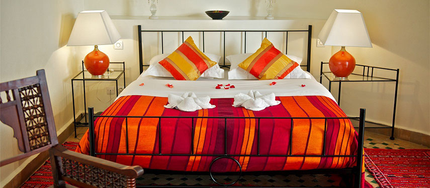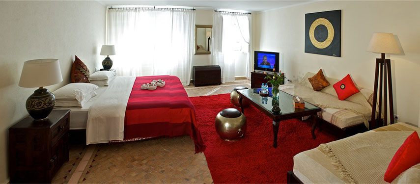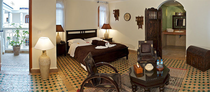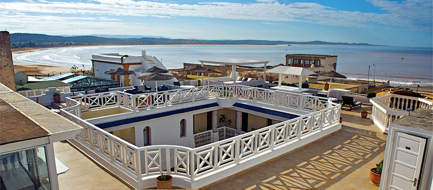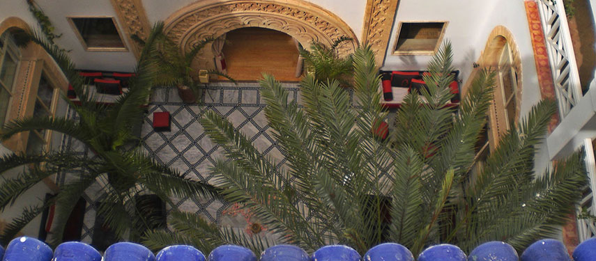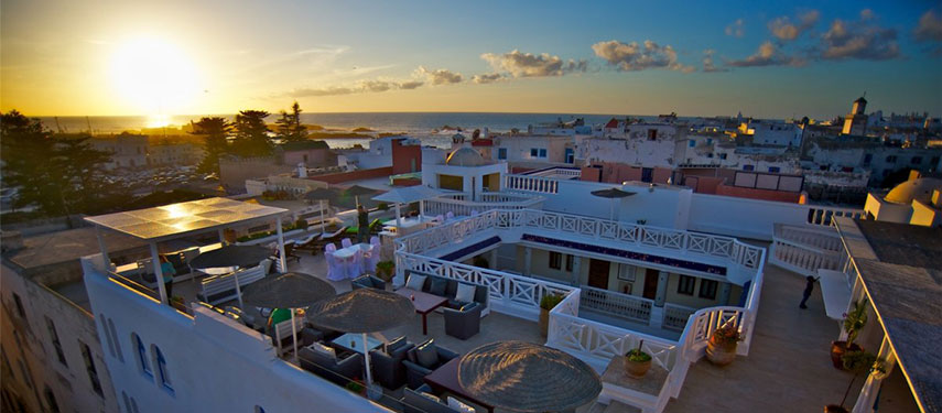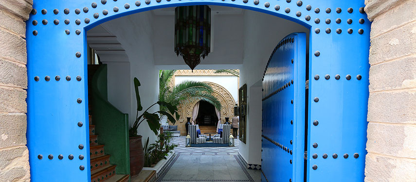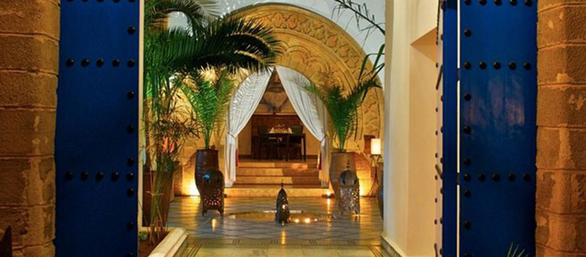 Situated on the ramparts of Essaouira’s medina Dar l’Oussia lies in close proximity to the souks, beach and ancient fishing port. Renovated by the finest craftsmen of Essaouira, Dar L’Oussia offers 20 spacious rooms and four suites. Each room and suite is meticulously decorated and extremely comfortable, and each has its own elegant bathroom. Some rooms are decorated using traditional materials such as tadelakt, marble and zellige (intricate stucco resembling lace).