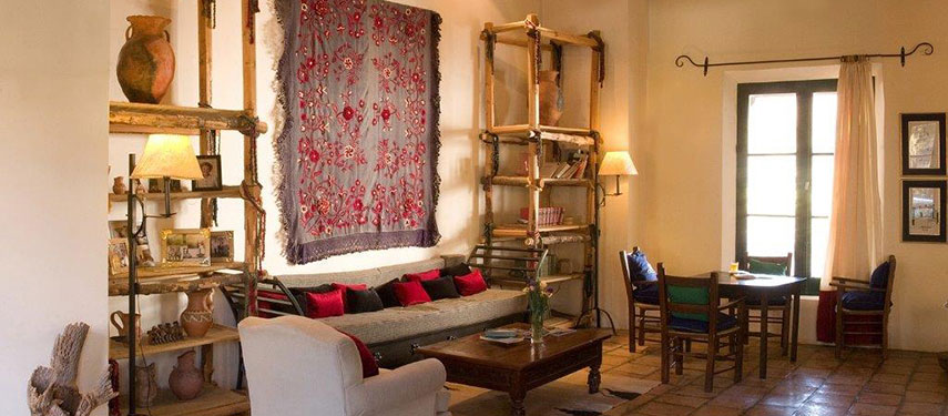 Even though El Manantial is only 15 years old, its architecture retains the key hallmarks of local traditions: white washed adobe, high ceilings made of cane, simple windows, stone floors and white interior walls. The décor in the bedrooms makes the most of these simple features and enhances the setting of the 19 guestrooms. The dining room has wide floor to ceiling windows, where sunlight pours in, with lovely views of the pool and mountains.