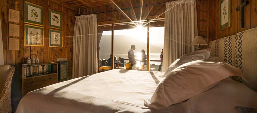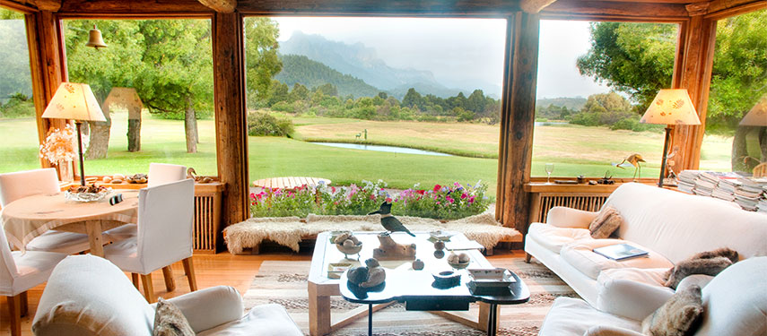 The main house is lovely, elegantly appointed, and very comfortable, with open views of the Patagonian countryside and its manicured gardens. There is also a heavenly guest cabin perched on a cliff with one of the most wonderfully imaginable views.