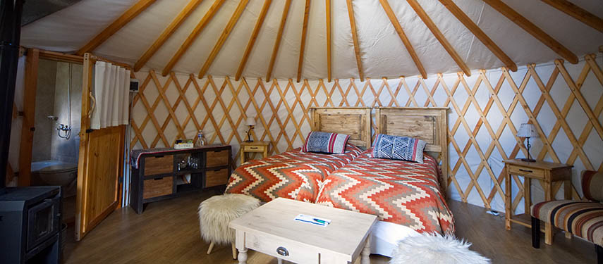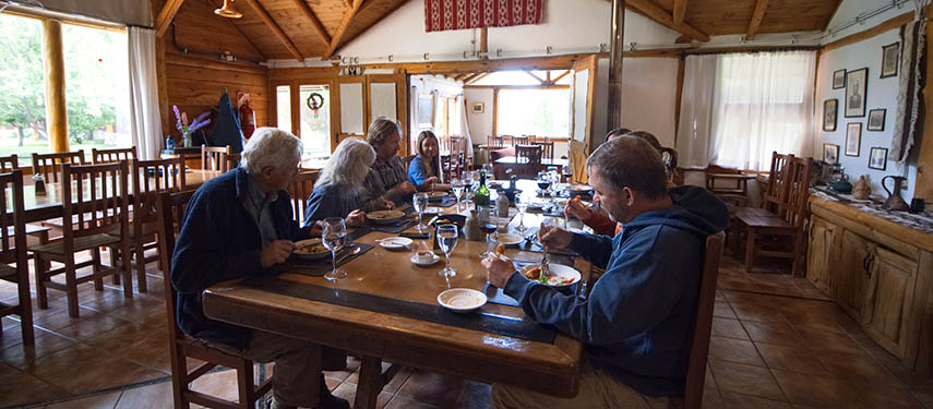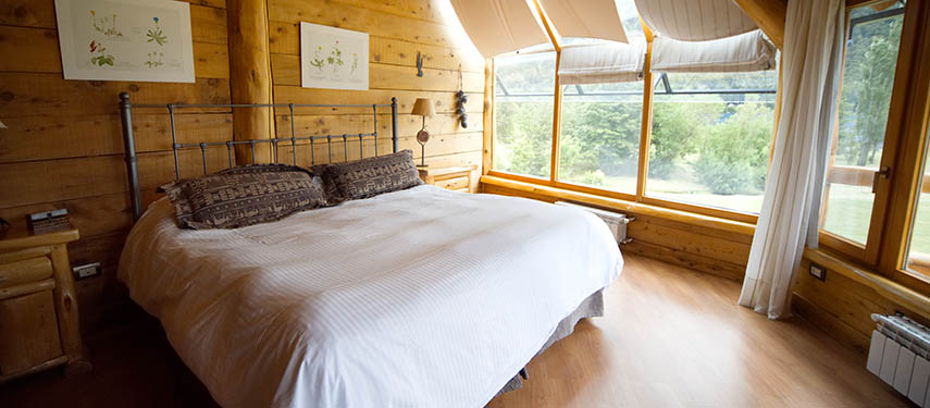 The beautifully comfortable lodge and cabins, have huge windows to drink in the view, roaring fires and lovely quiet spots to sit and relax. The rooms are in 4 well-designed houses and are homely and extremely comfortable. The colours and textiles are natural and harmonious, with lots of slate and local weavings and rustic wooden furniture. Guests usually sit together at long tables for meals and share tales and daily adventures. Imaginative meals are served changing with the season, and most of the fruit and vegetables are grown in Peuma Hue’s organic vegetable garden.