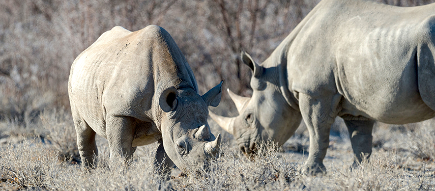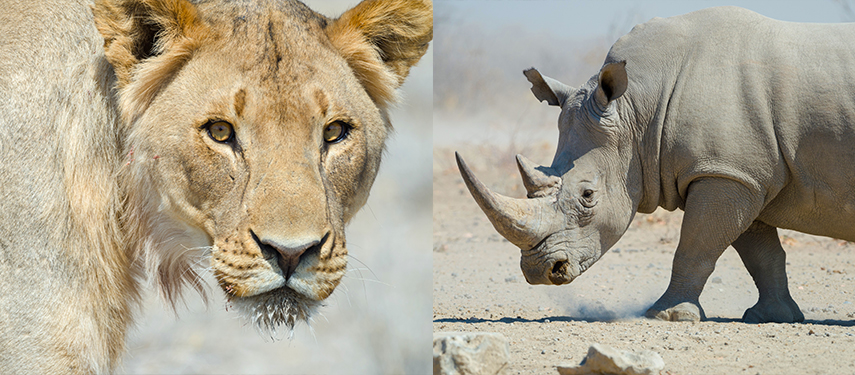 Etosha Heights is well known for its rhino population and these endangered giants amble freely between the private reserve and Etosha National Park leaving unmistakable footprints in the dust. In addition to rhinos, twice daily game drives will give you the opportunity to spot elephant, kudu and plenty of antelope species, followed closely by strong numbers of lion, cheetah and even leopard. Being on private land, night drives are also possible and heading out with a guide and a spotlight after dark is a thrilling way to spot Etosha’s rarely seen nocturnal creatures.