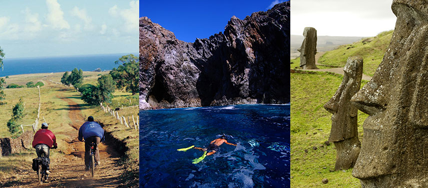 Every day you can choose from a wide range of explorations on foot, by bicycle or by boat, a couple of hours or full day, relaxed or physically demanding. Explore with specialist guides the mysterious stone statues, or moais, that form an almost unbroken ring around the coast. Learn traditional fishing techniques or snorkel in crystal clear waters amongst abundant marine life.