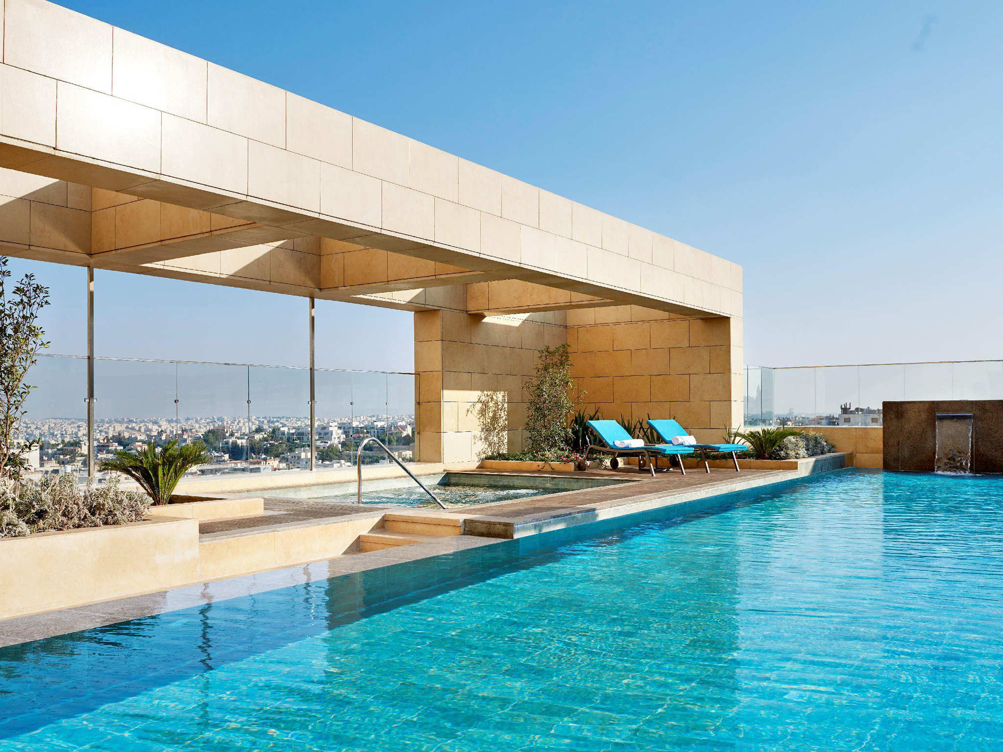Offering unparalleled views of the stunning Amman hills from the elegantly furnished rooms and the rooftop pool, bar and grill.  There is a wide range of cuisine on offer; from local food and shisha at Nasim, Levant cuisine at Nur, Japanese and the finest sushi at Tsuki, or a sizzled steak at Salt.   The onsite Willow Stream retreat offers six treatment rooms and one of the best hammams in the region.