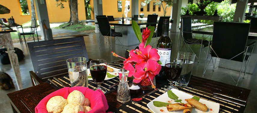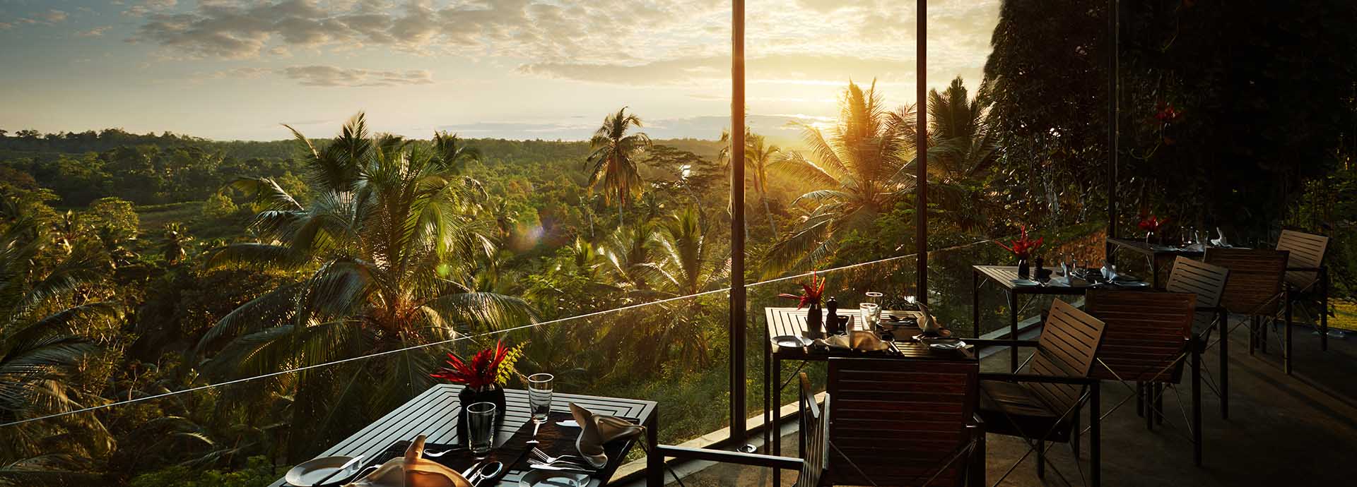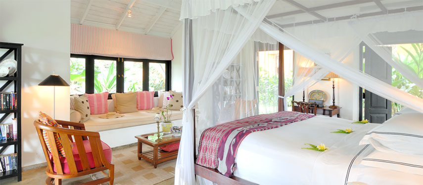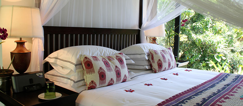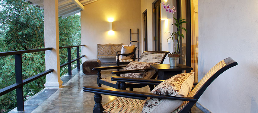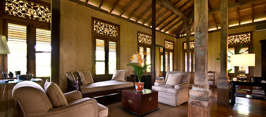 Each of the five suites are beautifully designed and decorated with stunning features and Asian artwork, antiques and private gardens, all different and exquisite in their own right. Views of tea, the jungle and distant lake can been enjoyed from each suite.