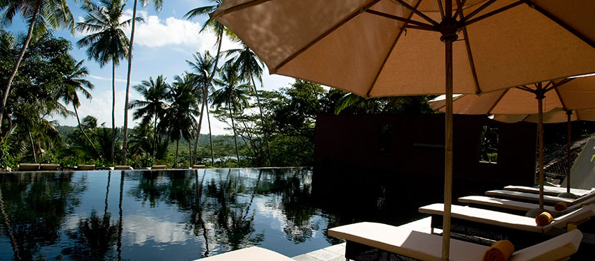 Located 15kms from the Galle Fort, in southern Sri Lanka, Kahanda Kanda is perched on a ridge overlooking Koggala Lake and surrounded by a working tea estate. This stylish private villa consists of a series of free-standing pavilions that house five suites, each air-conditioned with open-sided living and dining pavilions, beautiful gardens and an infinity swimming pool.