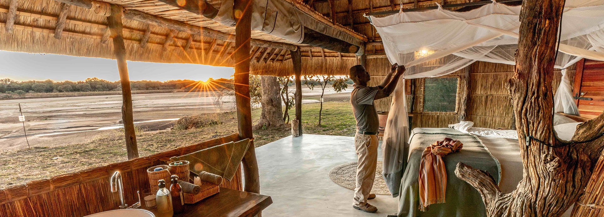 Kakuli is the only true bush camp open for the green season and offers spectacular views of the Luangwa River.