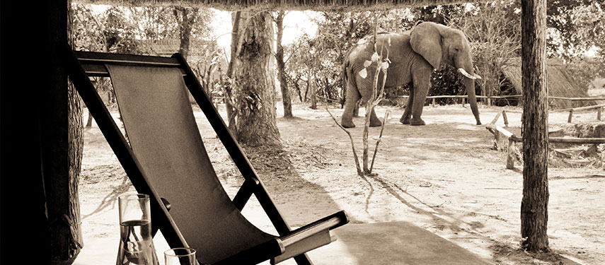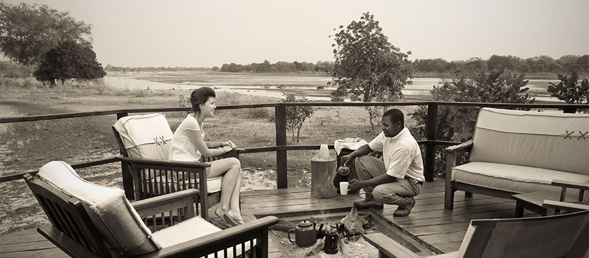 There are four traditional walk-in safari tents each with an en-suite bathroom made with natural materials. A lovely thatched chitenje (lounge) acts as the centre of camp. It is on a wooden deck overlooking the grazing lawn that leads down to the two rivers and is a perfect spot in which to relax and watch the wildlife meander by, the views from Kakuli are spectacular. The bar and dining chitenje is constructed of reed and thatch forming the centre point of camp.
