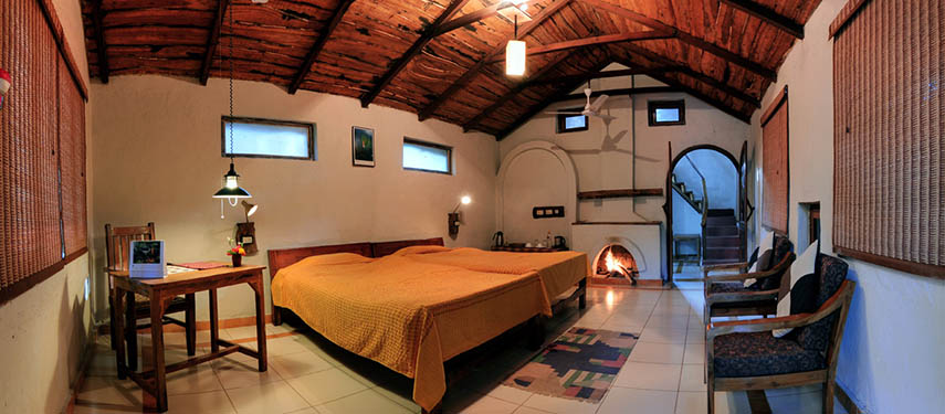 The lodge is built with natural materials sourced mostly from neighboring villages and the lodge estate. It is set in a natural forest which is home to many animals like Langur monkeys, wild boar, jungle cats and jackals.