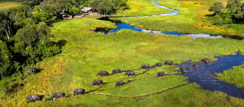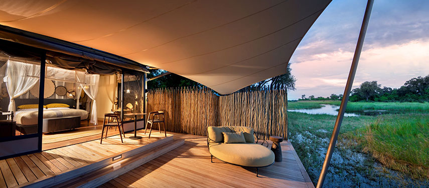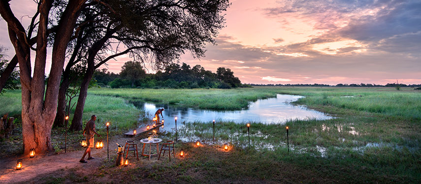Set within the Okavango community-run Khwai Concession, this beautiful camp is tucked under the trees on the edge of the Khwai River, where elephants and lions are frequently seen crossing.