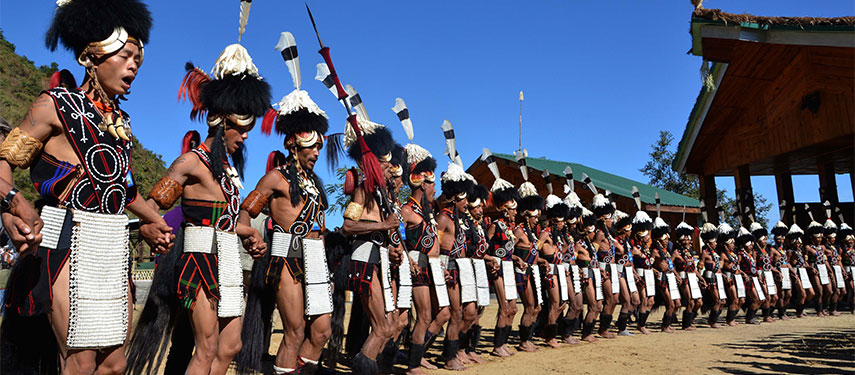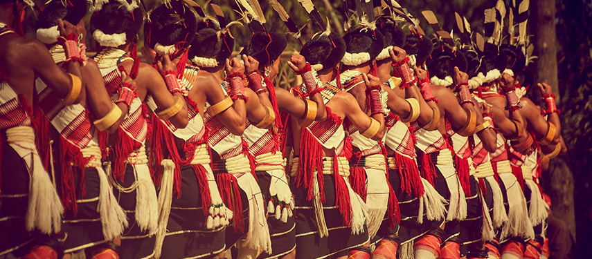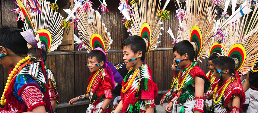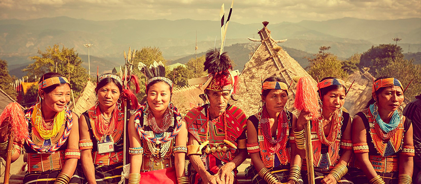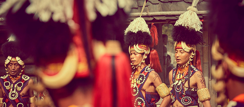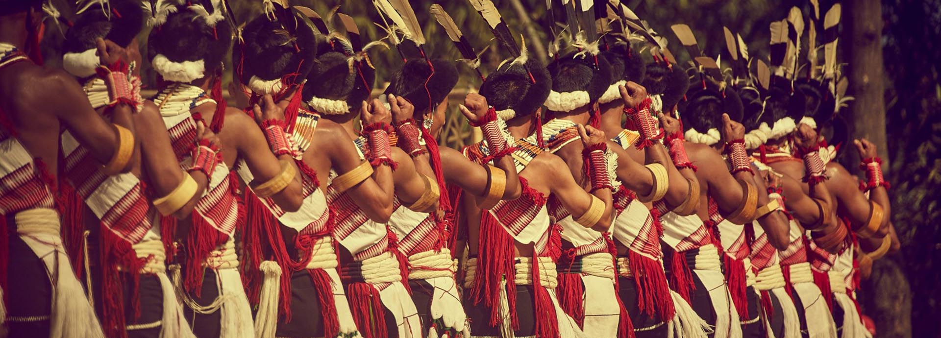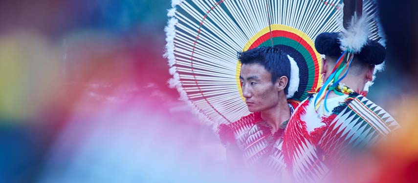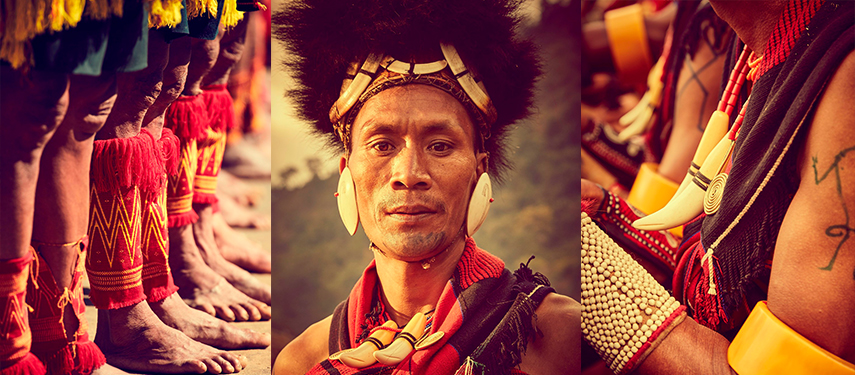 The Naga people, made up of 16 proud tribes, were once fearsome warriors and head hunters who have retained much of their traditional and cultural heritage, visible in their elaborate costumes and ritualistic headdresses which incorporate tiger tusks, bear skins, hornbill feathers and other symbolic accoutrements.