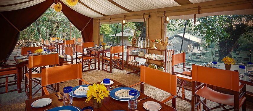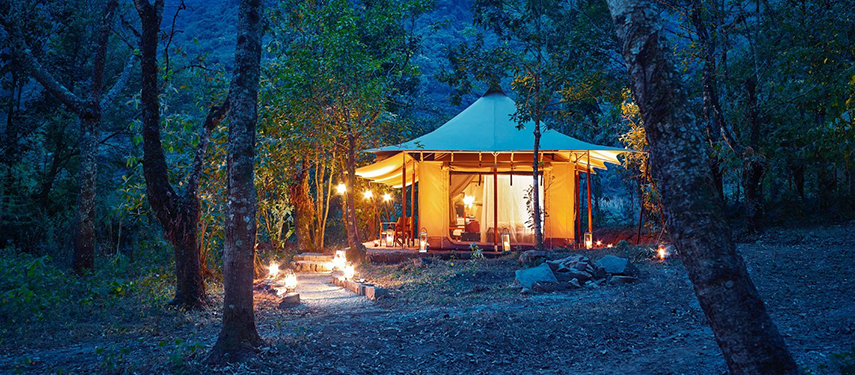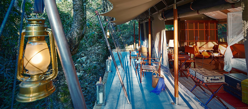 A small number of individually designed tents are built with en-suite bathrooms, furnished with four poster beds dressed in crisp linen and serviced by personal butlers. Each has a private sit-out that overlooks scenic mountain vistas.