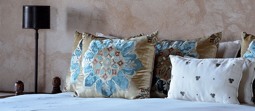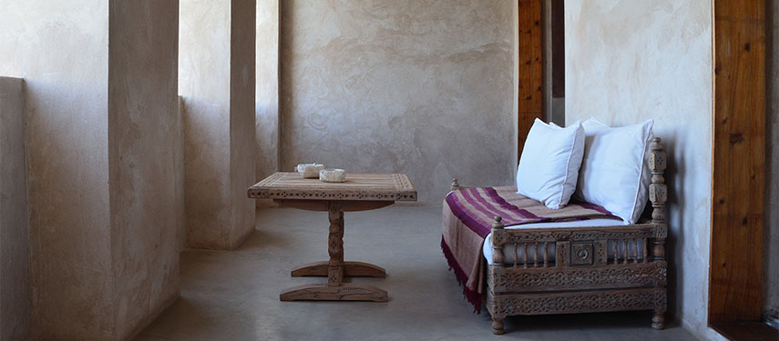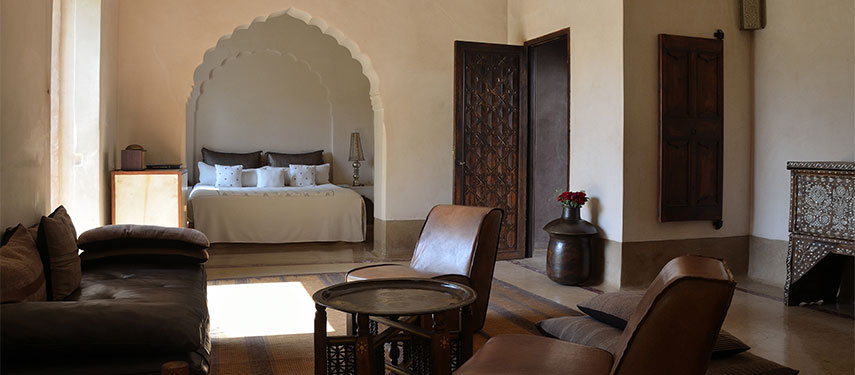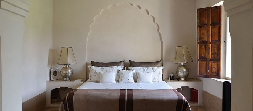 Simple yet tastefully designed rooms at Ksar Char Bagh emulate traditional Moroccan design