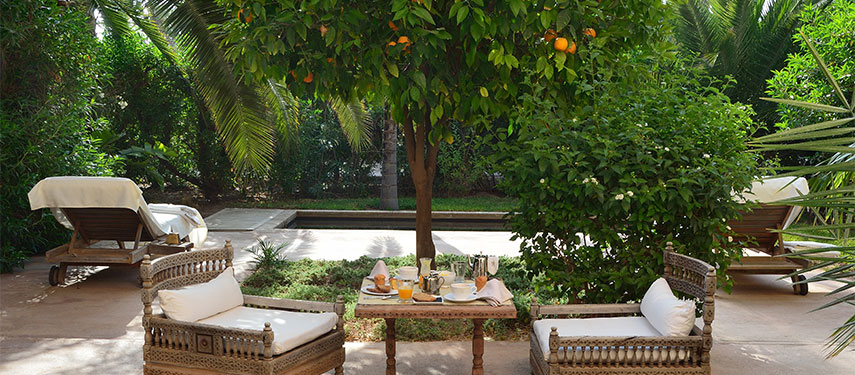 Cuisine is simply superb and the French chef specializes a blend of Mediterranean, French and Moroccan flavours. Meals are served by the pool in the restaurant, on your terrace, a different place for each meal.