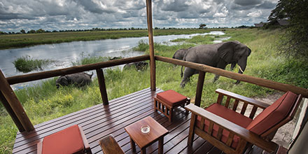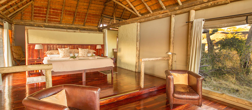 The camp is nestled beneath towering ebony and marula trees and accommodates only 16 guests in eight traditionally styled ‘tents.’ The heavily forested site is home to a wide variety of birds and mammals, while elephant and hippo are normally visible from the camp. The stunning views and close proximity of wildlife all contribute to the pervading sense of calm at Lagoon.