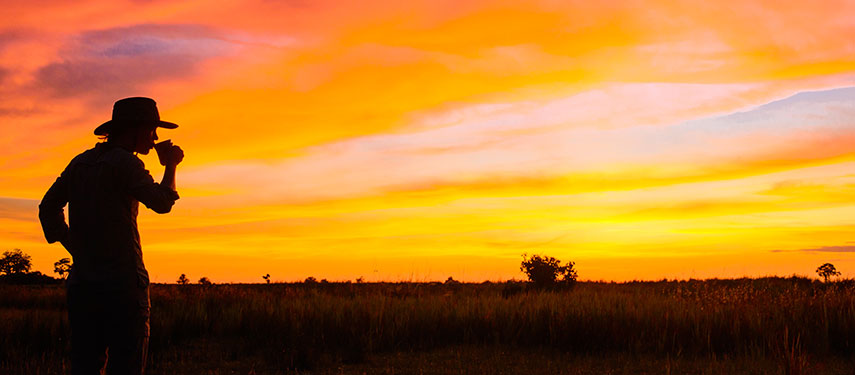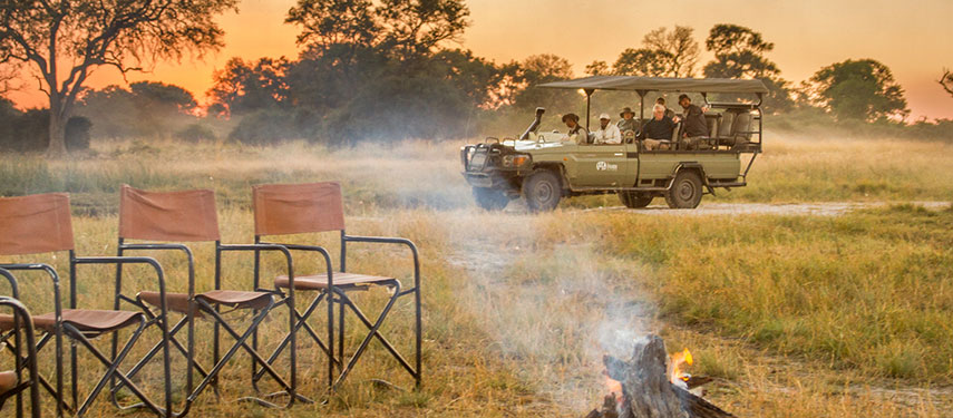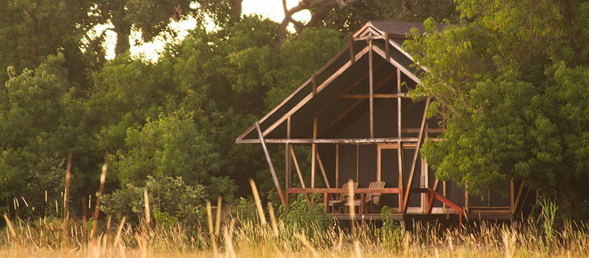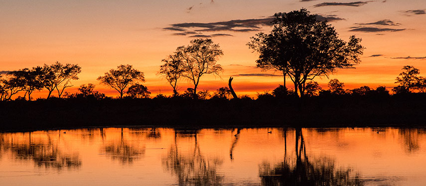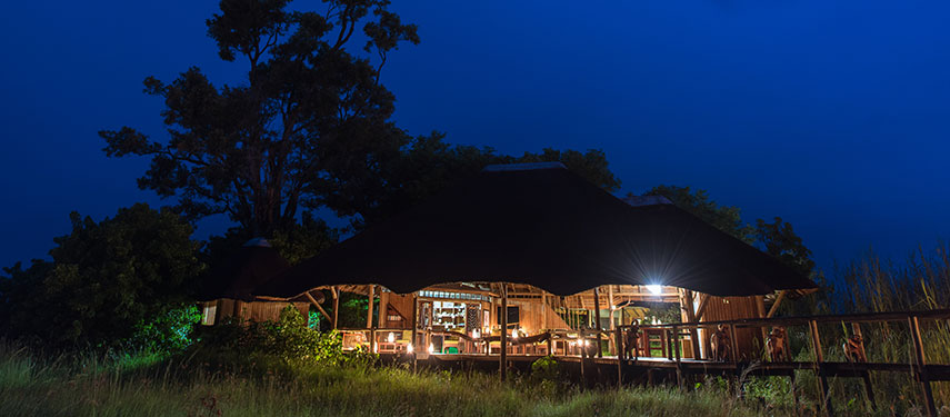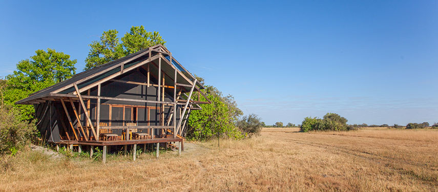 Lebala means ‘wide open spaces’ in Setswana and the scenery is dominated by vast plains with scattered palms and tree islands backed by wooded savannahs. This wild expanse contrasts with the casual understated bush-luxury style of the camp itself.