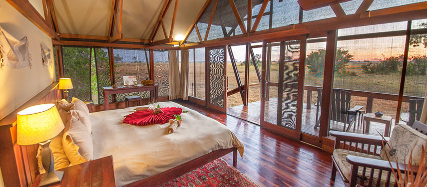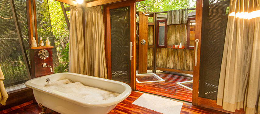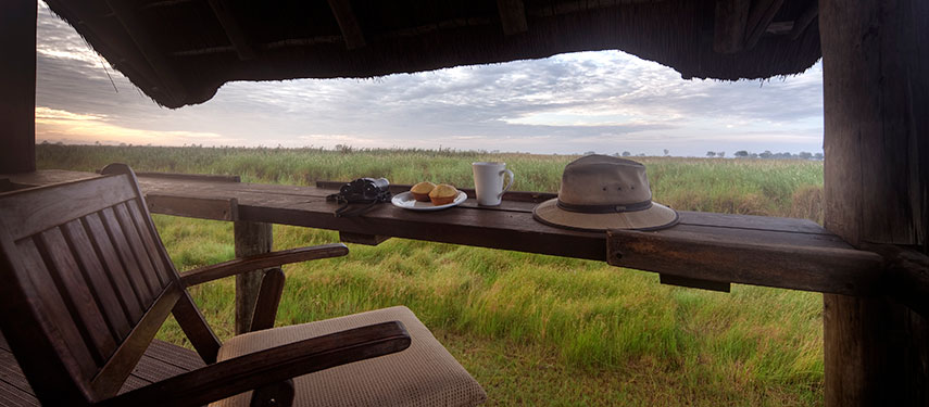 The camp is comprised of eight custom designed tents, with unique mosquito net walls, allowing an unobstructed flow of cooling breezes and stunning views. Each tent at Lebala is built on a raised teak deck, laid out with comfort and privacy in mind. The tents have an entrance foyer, en suite bathrooms with Victorian clawfoot bathtubs, “his and hers” washbasins and flush toilets. The bathrooms lead out to a reed enclosed open-air shower with hot and cold running water. The endless vistas from the large windows and decks across the vast plains, make Lebala one of the finest wilderness camps in Africa. The cuisine at Kwando is superb and caters for various appetites. The camp also has a pool.