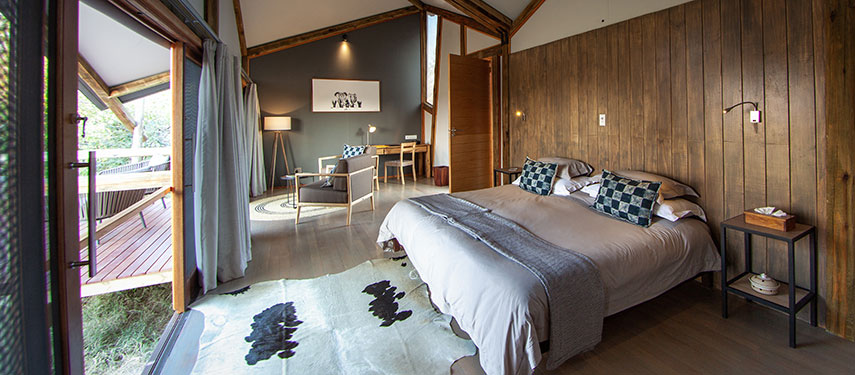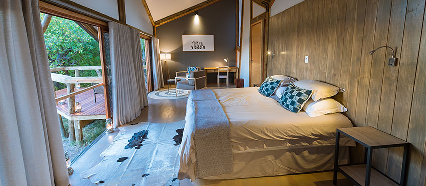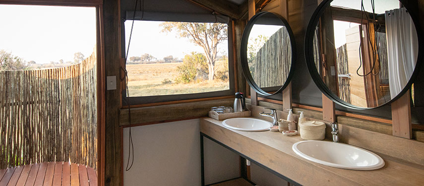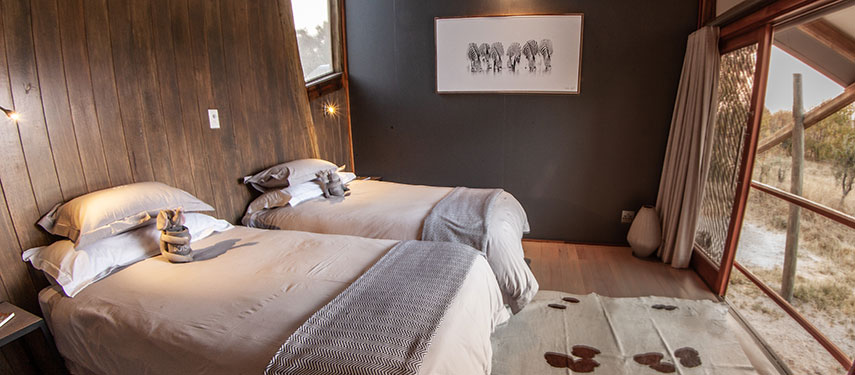 Located around a pan, each of the 12 rooms is situated on a deck overlooking the pan which attracts game year round. All are en suite with a flush toilet, double sinks and both an indoor and an outdoor shower. In addition each room has a private veranda with outdoor lounge chairs, the perfect place to relax and take in the magnificent views and soak up the atmosphere.