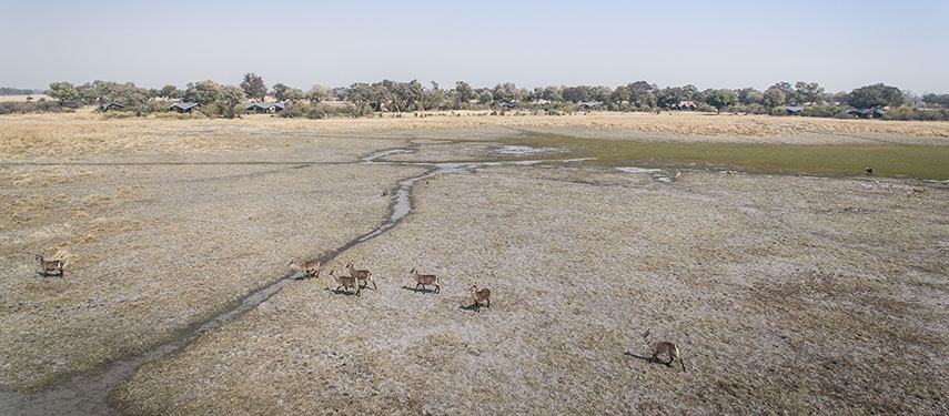 Splash Camp is situated in the heart of the Okavango Delta within the private Kwara Reserve. The concession shares a 30km water boundary with the famous Moremi Game Reserve and its unique location boasts both permanent water and seasonal flood plains as well as extensive dry bush wilderness. This unique environment gives rise to high concentrations of wildlife and excellent sightings.