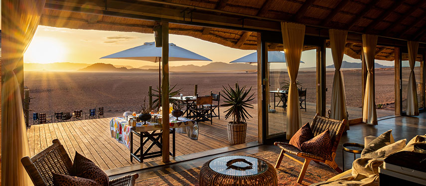 Kwessi Dunes is a Sossusvlei safari camp located deep in Namibia’s striking NamibRand Nature Reserve, a vast desert wilderness of over 200,000 hectares. With its rolling desert plains, craggy mountains, and iconic red dunes, this is a place where time seems to stand still and the space is never-ending. Here, it’s not about chasing big game, but rather soaking up the beauty of the colourful landscape, admiring the antelope that scatter the sand, and gazing at the stars that light up the night sky.