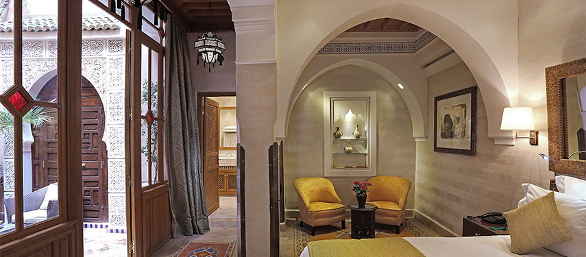 At La Maison Arabe, the refined guestrooms are set around two flower-adorned patios. Each room is unique in style and decor, adorned with antiques, ancient artwork, carpets and precious fabrics, and many boast private terraces or balconies.