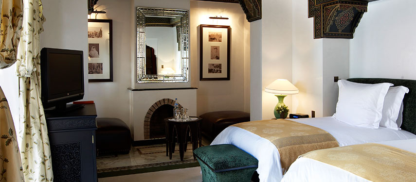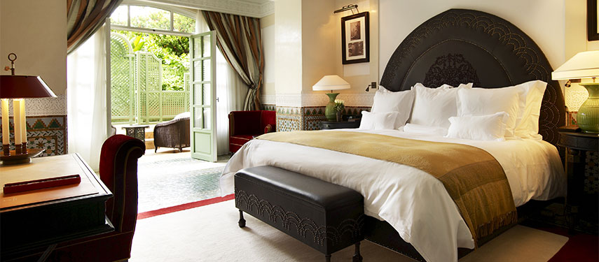 Most rooms here offer a view of Koutoubia Mosque, the gardens or the Atlas Mountains and the suites are all individually decorated in their own distinctive style. The very English Churchill suite features a Chesterfield desk, distressed leather sofa and even Churchill’s hat. Meanwhile the Baldaquin suite is a vast expanse of soft, feminine white décor with romantic canopies and sumptuous linens over a king-sized bed.