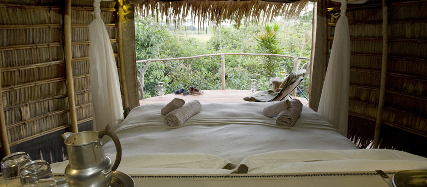 Lango Lodge offers a genuine wilderness experience, set deep in the gallery forest with sweeping views over the vibrant Lango Bai.