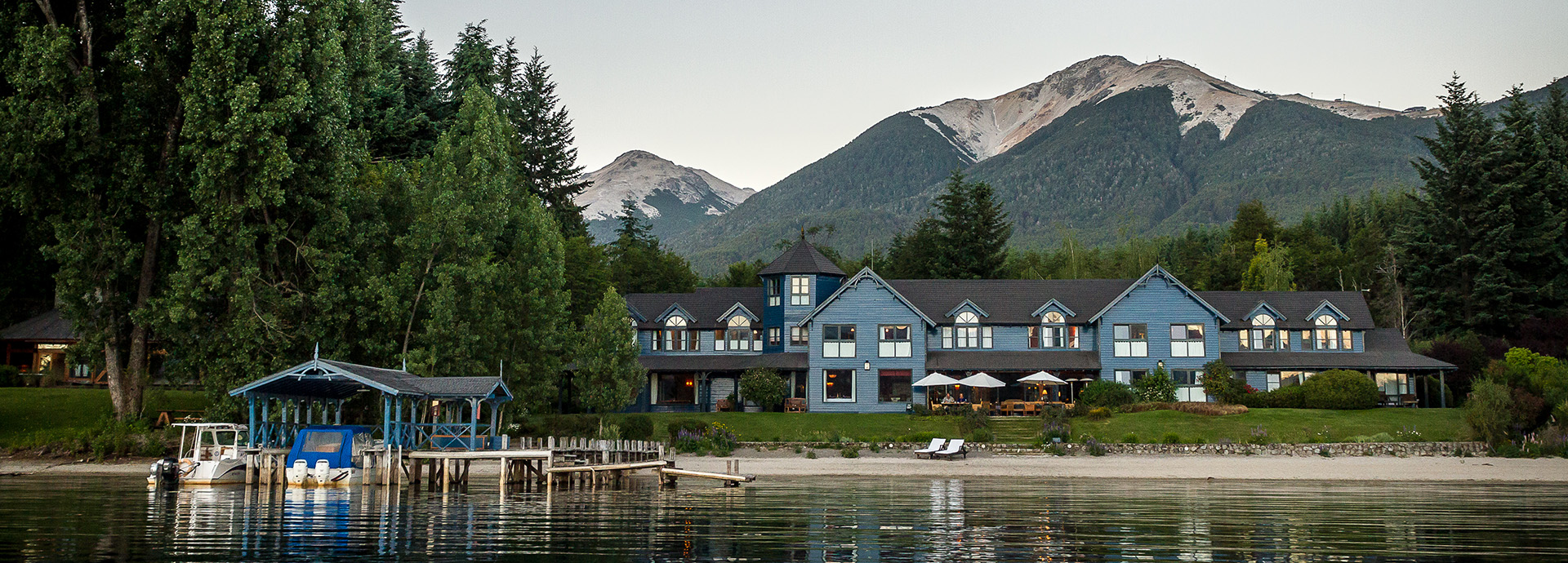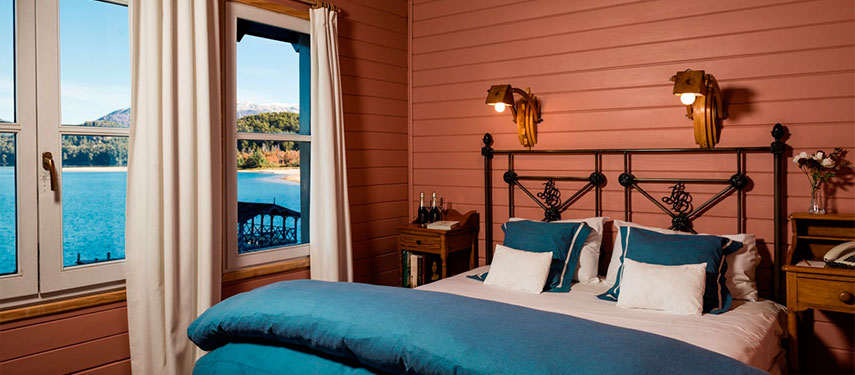 The quaint blue shutterboard house is effortlessly charming, sitting amidst mature gardens with direct access to a private lakeside beach. Rooms are contemporary yet cosy with oversized windows maximizing stunning views across Nahuel Huapi Lake. A small leisure house offers a gym, Jacuzzi, sauna and swimming pool while the spa incorporates natural ingredients into a range of revitalizing treatments. As a Relais & Chateaux member, the restaurant at Las Balsas is exceptional with innovative dishes designed to reflect the lodge’s natural environment. After dinner, the main lounge area with central fireplace is the perfect spot to retire with a glass of Malbec