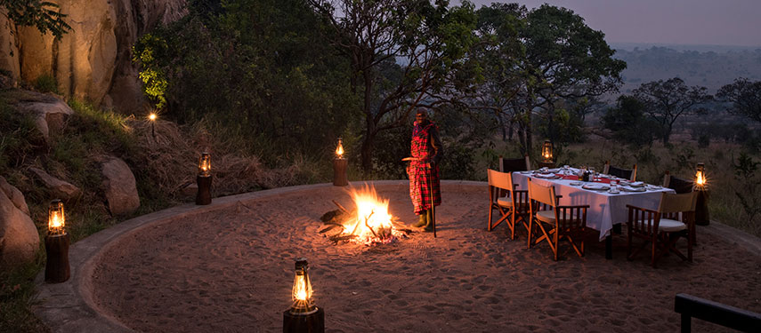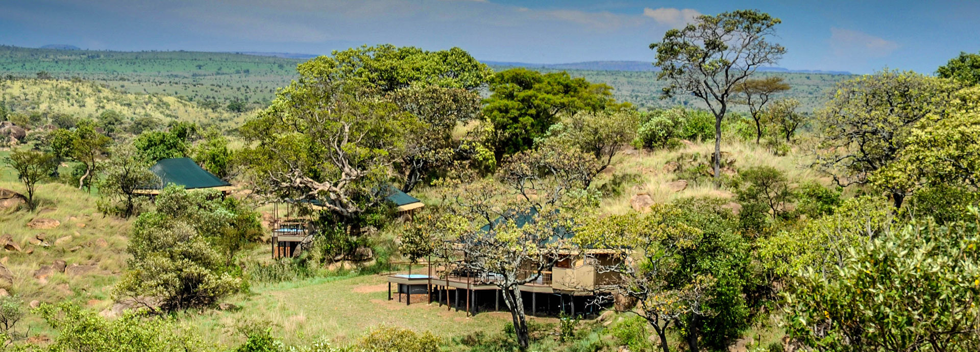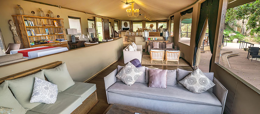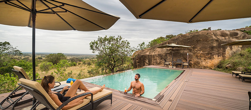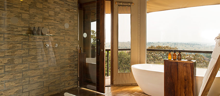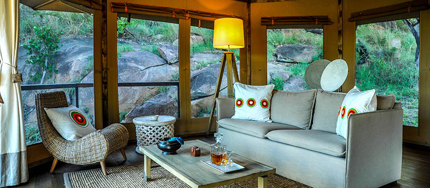 This permanent tented eco-camp has been designed to harmonize perfectly with its surroundings and tread lightly on the environment. The ten guest tents are positioned to ensure privacy whilst providing unsurpassed and dramatic vistas of the beautiful Serengeti landscape. Stylishly furnished, each glass-fronted tent is complete with a sitting area, bedroom, en suite bathroom, outdoor shower and deck area. There are several dining options at the lodge or out in the bush, afternoon tea is served daily, and cocktails at sunset are taken on one of the kopjes with distant views of the Isuria Escarpment in the Maasai Mara. The Melengali Spa is in a separate tent where you can indulge in massages in a peaceful, natural setting .
