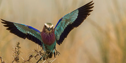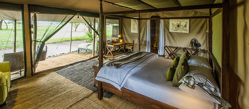 The luxury of sharing 16’000ha with only 10 guests sets the ideal stage where you can perfectly blend into the wilderness. Lions roam the camp and call each other at night; stately elephants march down to Lake Burunge to get a sprinkling of fresh water; cheetahs hunt on the plains facing the lake; leopards, eland and lesser kudu can be seen in the more dense woods in the inner part of the concession. And wherever there is water, the bird life is abundant and colourful.