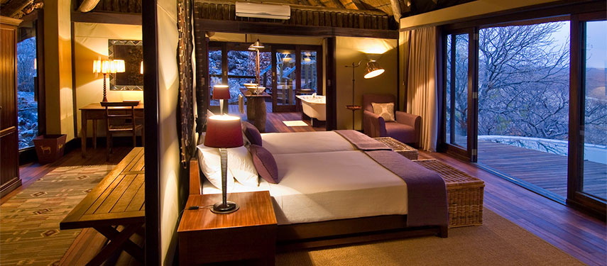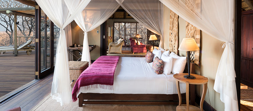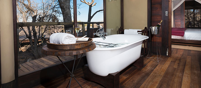 This intimate camp has only three spacious suites each with its own plunge pool, en suite bathroom, ‘sala’, and outdoor ‘al fresco’ shower. These and the lounge and dining area have wonderful views of the waterhole below the camp and the latter lends itself to relaxed, stylish dining under the African sky.