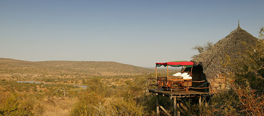Loisaba Tented Camp is perched on the edge of a 500ft escarpment with dramatic views across the Laikipia plains to snow capped Mount Kenya. It sits within the stunningly beautiful Loisaba ‐ a 56,000 acre private wildlife conservancy famous for its elephant population and big cats.