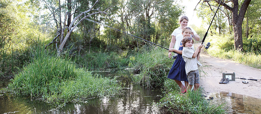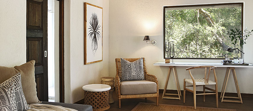 This is an African safari in the classic style, replete with black and cream ticking fabric and original mahogany beds. Deep leather couches, military chests, compass safari lamps and a riverside lounge sala, create a mood of easy luxury and laid back welcome for discerning families and travellers.