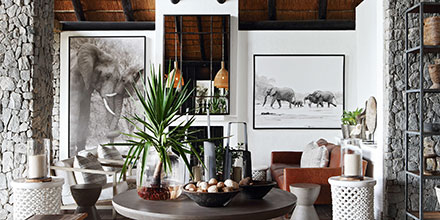 The Private Granite Suites offer an extraordinary experience for the exclusive use of six guests. Bold, inspiring materials mirror the extrusion of granite rocks that flank the camp while conveying the raw essence of Africa. A palette of silver, charcoal and elephant grey in a range of sumptuous materials creates an elegant and contemporary setting in each expansive suite.