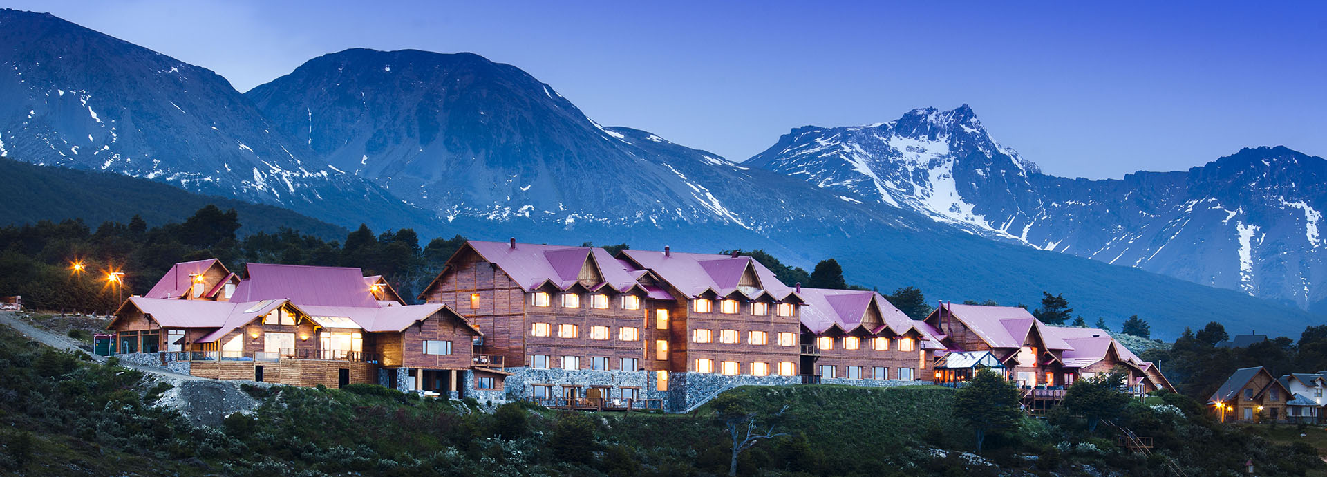 Virtually at the end of the world, Los Cauquenes Resort & Spa is set on the shores of the Beagle Channel in Tierra del Fuego, with stunning views of the snow-covered peaks of the imposing Andes Mountain Range.