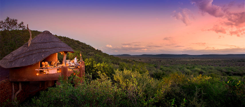 Intimate accommodation, in three small safari camps, offers sweeping views over the game-filled plains with the Dwarsberg range forming a purple-hued backdrop. Each suite is private and spacious, equipped with their own private plunge pool, large viewing deck, fireplace, lounge area and stunning vistas. Enjoy bush breakfasts, boma dinners and sundowner drinks and canapés during your stay.