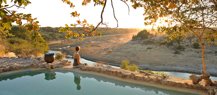 Pool and plains views at Meno a Kwena