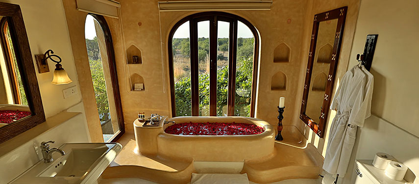 Mihir Garh comprises just nine exclusive suites, each offering over 1700 square feet of luxurious, private space. The Alishan suites on the ground floor have  private courtyards and plunge pools while the Shandaar suites on the first floor boast personal sun terraces and jacuzzis.