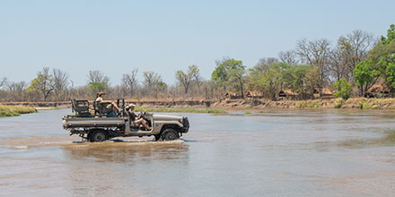 Guests may catch glimpses of hyena hunting puku in the shallow waters of Mwaleshi, enjoy impressive herds of buffalo coming in for their daily drinks, whilst the large number of resident lion keep an eye on their prey. A highlight is undoubtedly walking barefoot through the shallow waters of the Mwaleshi.