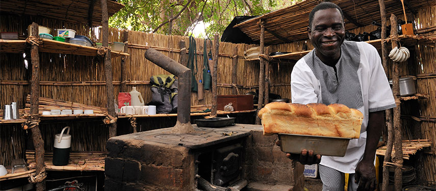 Freshly baked bread is served daily by local chefs at Mwaleshi Camp in Zambia